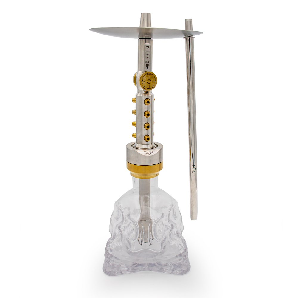 La Chicha DUM Philip P combine design audacieux et performance haut de gamme. Disponible en deux finitions élégantes – dorée et argentée, elle se distingue par sa vasque en verre épais en forme de crâne 3D, solide et unique, pour un style spectaculaire.